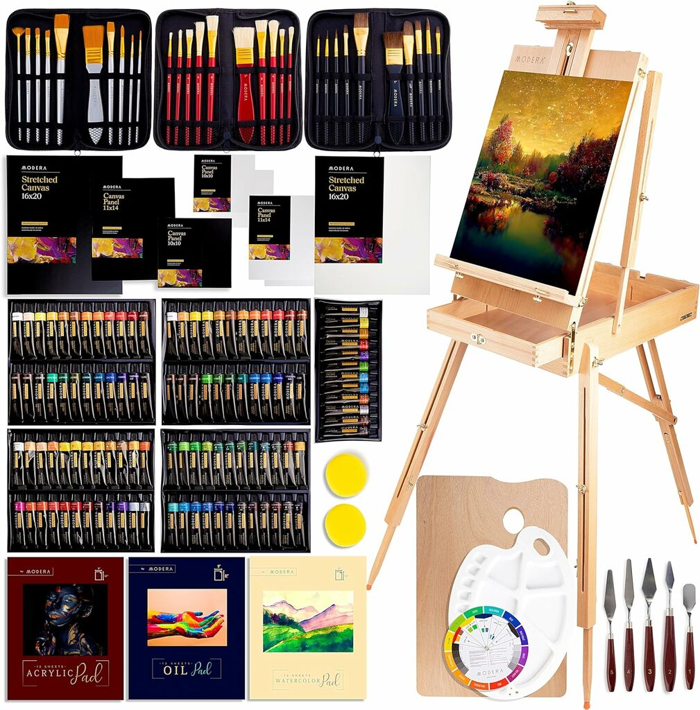 Are you an aspiring artist looking for the perfect set to jumpstart your painting journey? Look no further than the Modera All-in-One Deluxe French Easel Painting Set. This impressive 163-piece art kit is designed to provide everything an artist needs to get started, from paints and brushes to an easel and canvas. Whether you’re a beginner or a seasoned painter, this all-inclusive artist starter kit is sure to inspire your creativity and enhance your artistic skills. In this review, we will take an in-depth look at the Modera All-in-One Deluxe French Easel Painting Set and explore its features, quality, and value for money. So, let’s dive in and discover why this comprehensive set is a must-have for any aspiring artist!